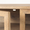 A wood, glass and metal sideboard, perfect for showcasing special trinkets or displaying everyday dinnerware.