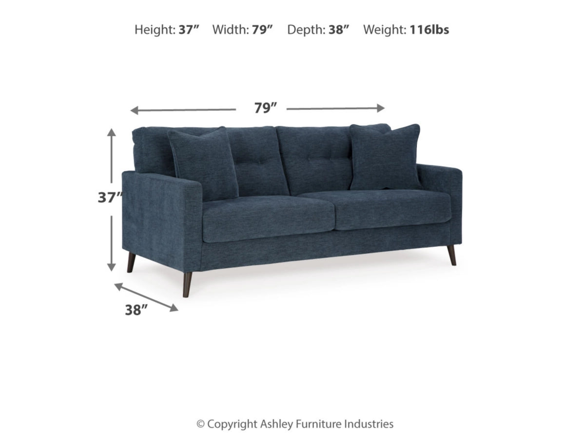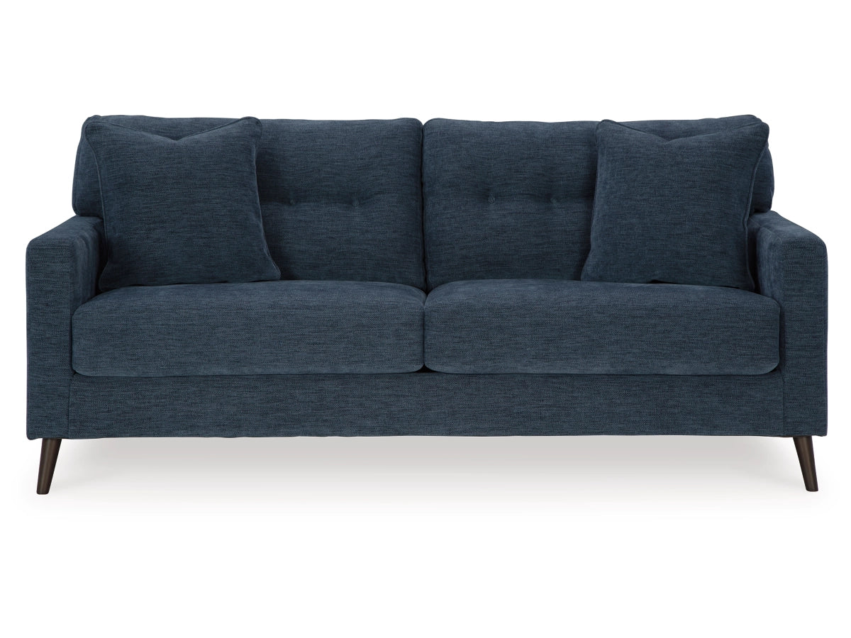 Durable polyester upholstery with a tufted back delivers a refined, low-maintenance aesthetic. Generously sized seating and classic-foam cushions provide supportive comfort for up to three adults. A solid and engineered wood frame with reinforced joints ensures long-term structural stability. Low-profile tapered wooden legs create a contemporary silhouette while maintaining a comfortable seat height. Removable cushion covers simplify routine cleaning and maintenance.