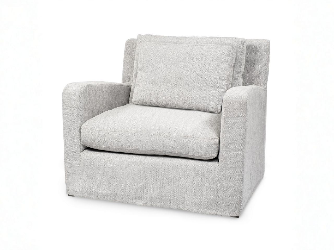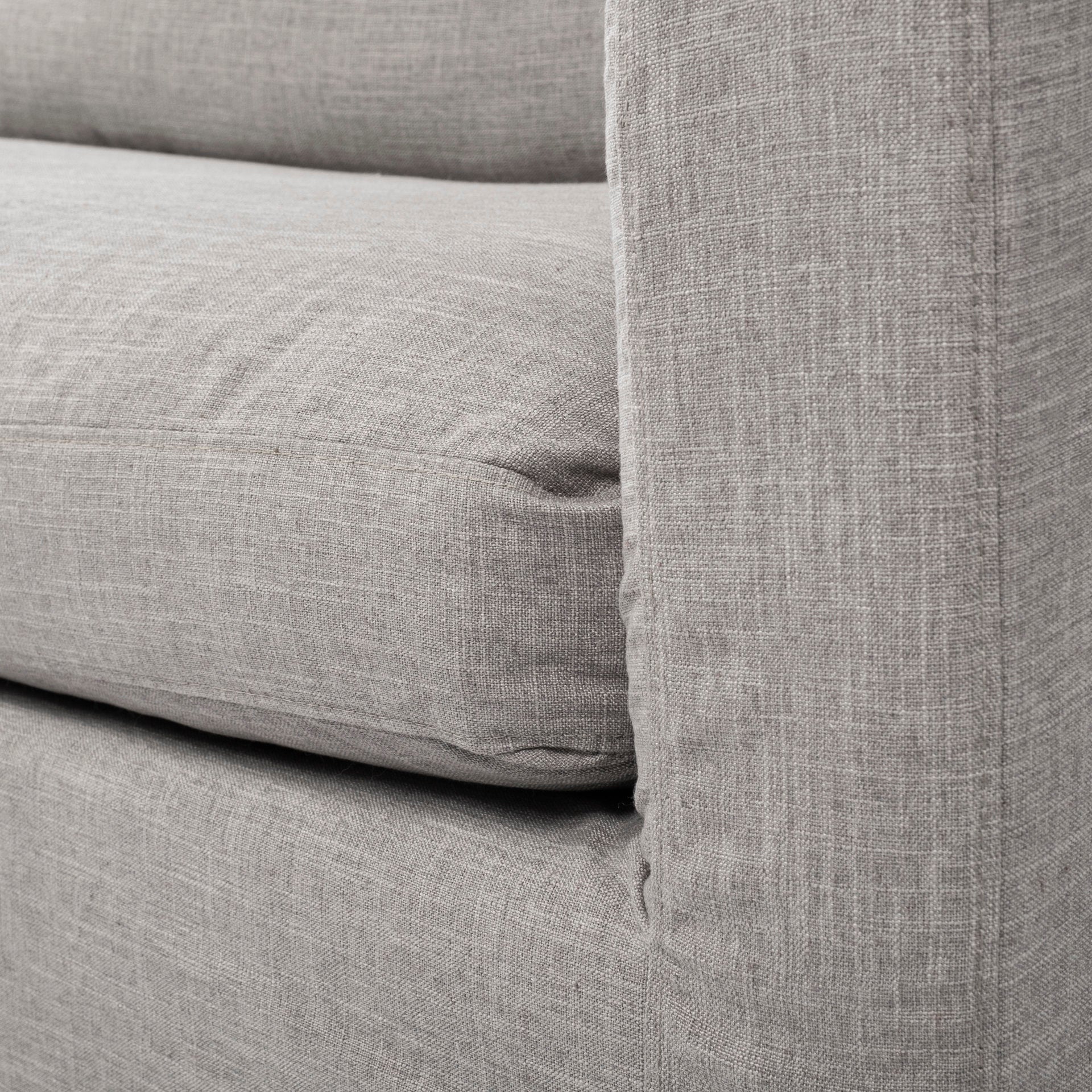 The Denly III's beauty lies in its simplicity and unostentatious feel. Featuring a solid wood frame and four-legged base finished in a natural brown polish, the Denly III makes for an exceptionally sturdy and stable choice of accent seating. In addition to this, the Denly III also boasts of plush, Flint Grey toned, slipcover upholstery that is complemented by the perfectly stuffed deep seating and detachable back cushions. With a simple design that focuses on comfort, the Denly III looks gorgeous in spaces based on the Enduring Elegance and Coastal design styles.