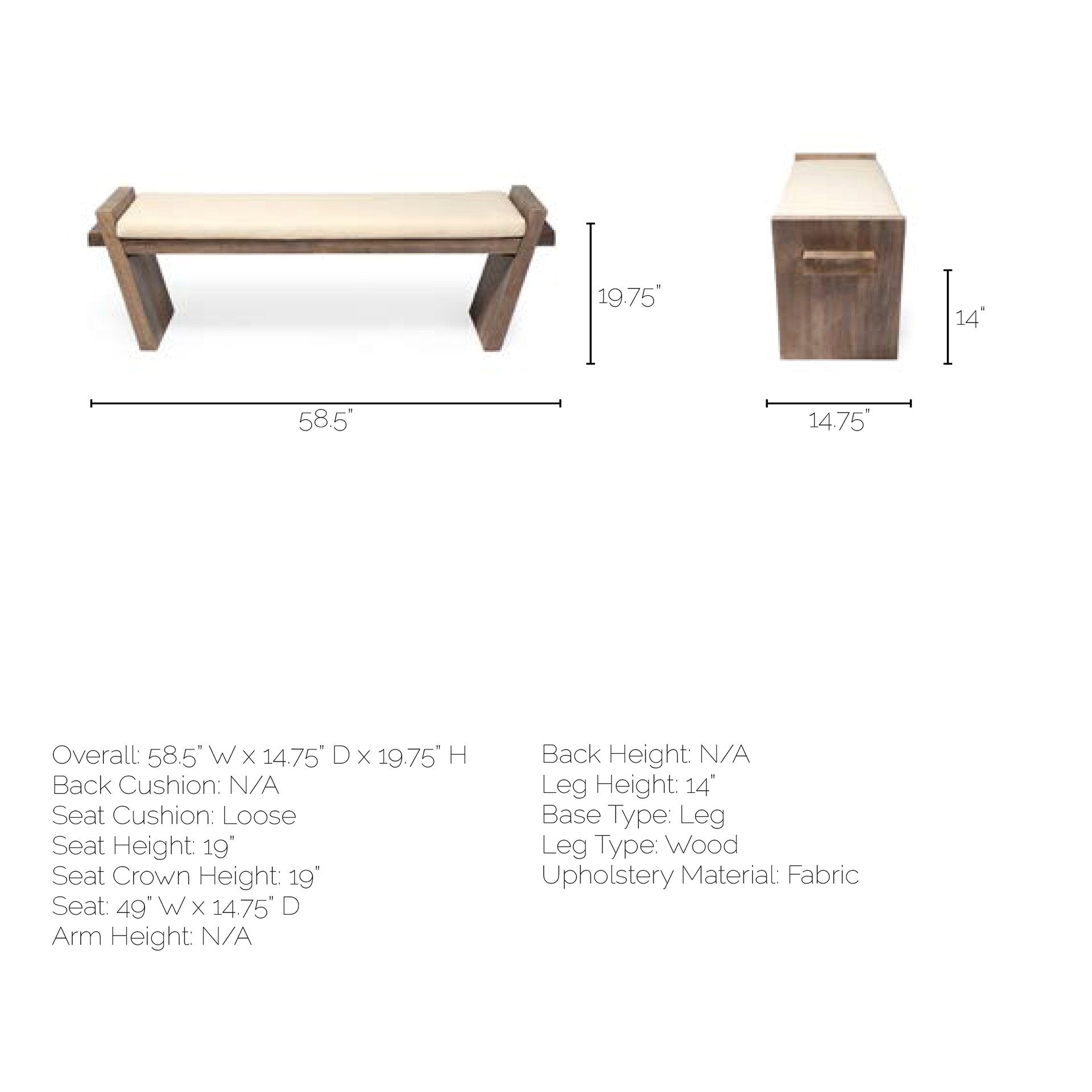 Elaine l Brown Wood Upholstered Cream Seat Bench