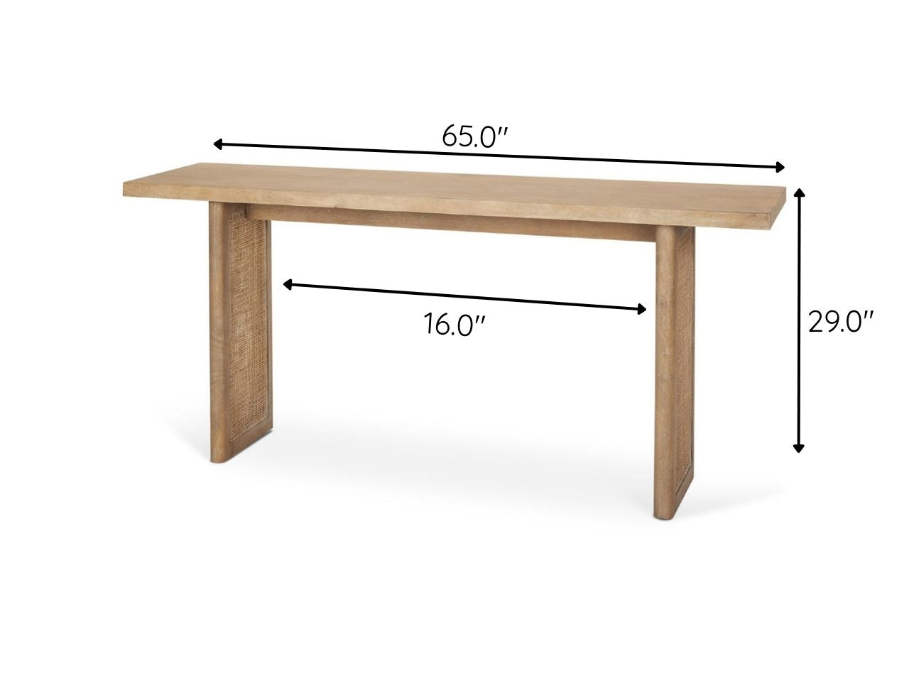 The Grier console table in Calgary, is a sleek and chic addition to any living space. It's crafted from solid Mango wood and finished with classic cane details, giving it a Meditteranean-coastal vibe that'll make your home feel like a vacation oasis. Perfect for entryways, hallways, living rooms, great rooms, or office spaces, this offers a beautiful surface to display objects, trays, and accessories.