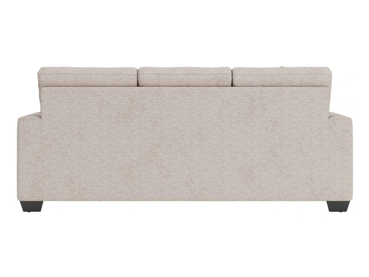 Transitional Larimer sofa in Calgary provides three-seat comfort with durable 100% polyester upholstery and tufted seat cushions designed for daily use. A corner-blocked hardwood frame combined with a platform foundation delivers stable, long-lasting support and resists sagging compared with traditional sinuous springs. Track arms, exposed faux-wood feet and a neutral stone finish enable versatile styling for contemporary living rooms. Two toss pillows with soft polyfill add targeted lumbar support while maintaining a clean silhouette. Dimensions: 223.5 cm W x 96.5 cm H x 101.6 cm D; seat height 50.8 cm; product weight 56.2 kg.