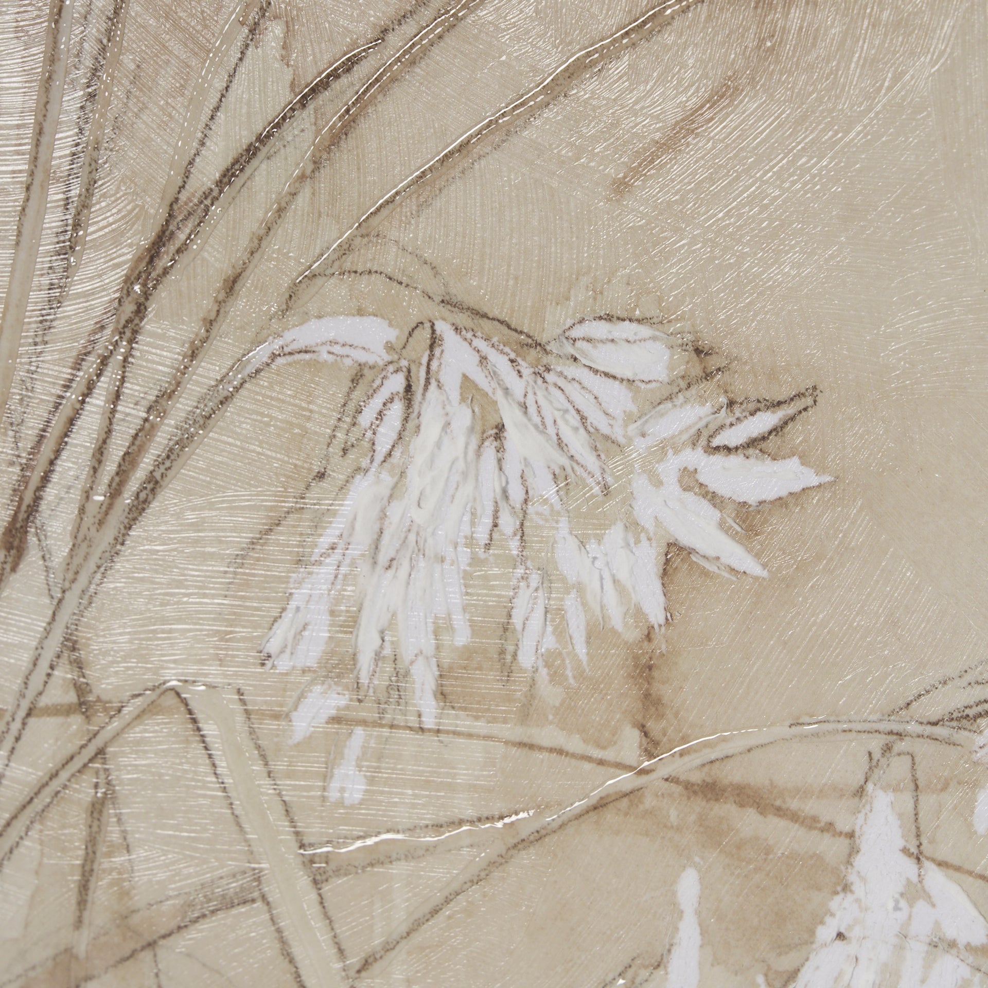 Hand-embellished textured framed floral prints in Calgary with matted under-glass presentation, tailored for contemporary and modern farmhouse interiors. Available in two framed size groups (approx. 81 × 107 cm and 107 × 158 cm) to suit entryways, living rooms and home offices. Rigid plastic frame with clean profile and included hanging hardware ensures rapid, level wall installation. Portrait orientation and neutral tones deliver versatile styling with lasting archival print surface. Designed to reduce glare while preserving the print with a protective mat and glass layer.