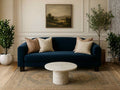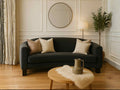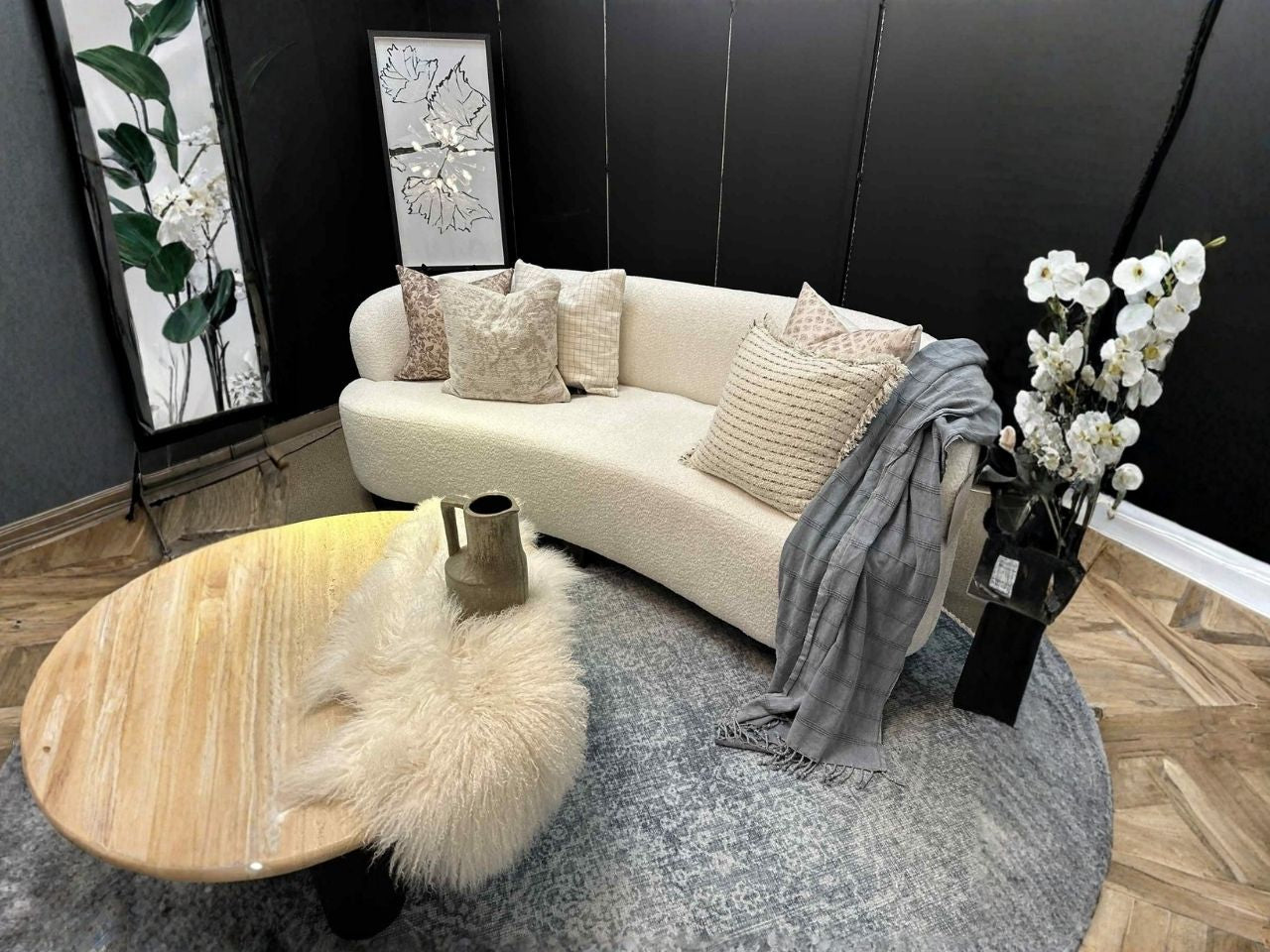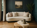 The Nellie custom Canadian made sofa in Calgary offers a graceful curved silhouette with deep, ergonomic cushioning that balances contemporary style and everyday comfort. Upholstered in a soft textured bouclé-style fabric, it delivers a tactile, durable surface suited to living rooms and hospitality settings. The hardwood frame and high-resilience foam core provide structural stability and long-term seat support. Available as a fully customizable piece with choice of sizes and fabrics to match interior schemes. Professional dealer quote required; dimensions and finishes can be specified at order.