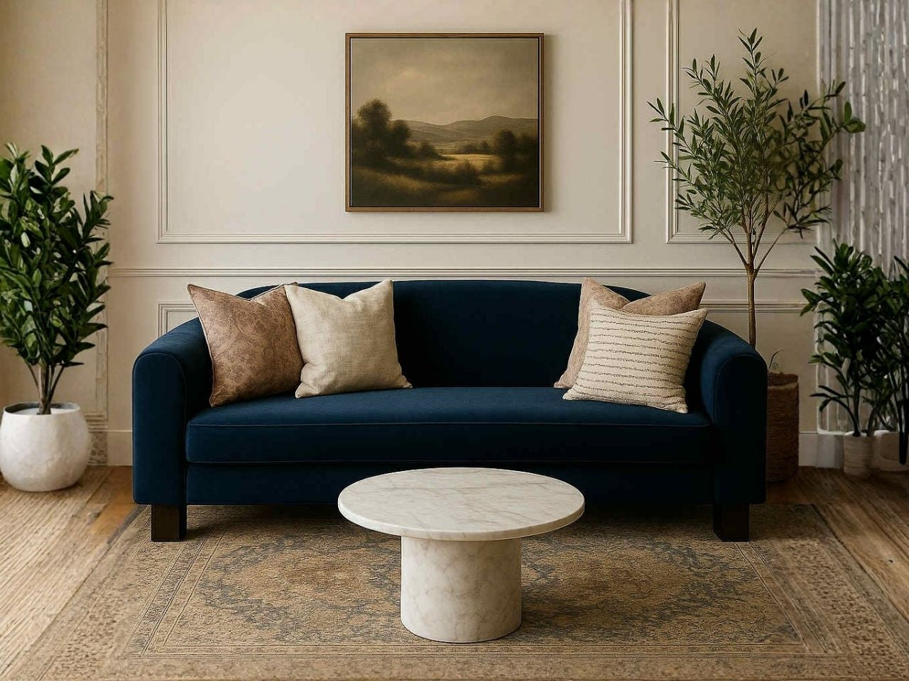 | Upholstery | Soft textured bouclé-style fabric (custom fabrics available) |