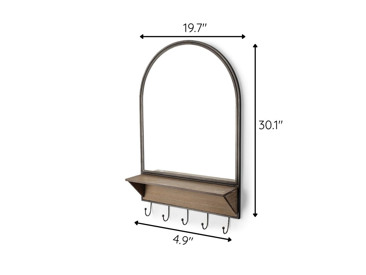 Crafted from metal and wood, the Neville is a stunning, oval-shaped wall mounted mirror featuring a shelf in addition to five hooks that can host keys and other small artifacts. The Neville flaunts a minimal design that ensures it is a good fit in any space and setting.