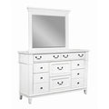 Complete your relaxing retreat with the Stoney Creek bedroom collection. This traditional bedroom set offers large-scale designs with a textured, antique white finish. Antiqued, blackened metal hardware and tapered leg detailing adds a little modern farmhouse charm to your home.