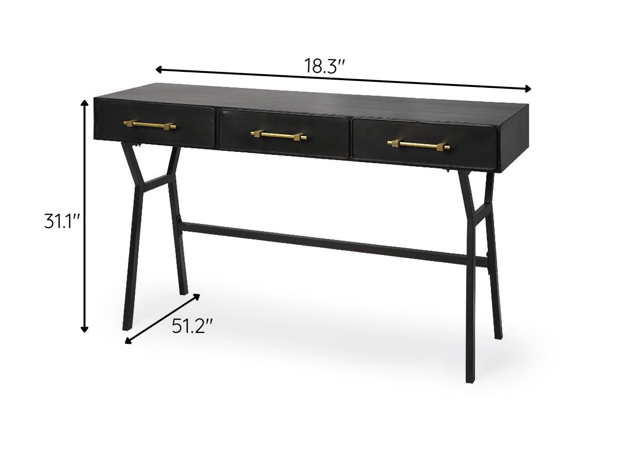 Looking for an office desk in Calgary that is functional and adds a touch of style to your home? Look no further than the Vince office desk. This spectacular all-metal writing desk is finished in a matte-black tone with gold accents.
